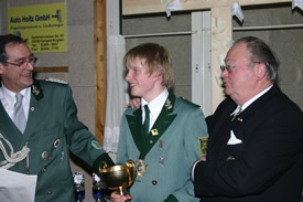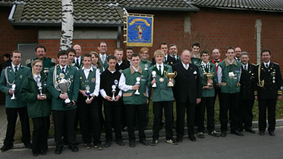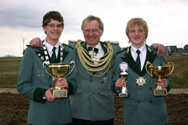 Birgden. Voller Stolz blickte Dekanatsbundesmeister Heinrich Aretz bereits am frühen Sonntagmorgen auf die Jungschützen. Über einhundert Jungschützen marschierten zusammen mit der gastgebenden Bruderschaft St.-Urbanus, begleitet vom Tambourcorps Birgden zur Pfarrkirche. Mit dabei auch die Standarten (Vereinigte Schützen Breberen bei den Senioren und Tüddern bei der Jugend) des Dekanats-verbandes sowie das Holzkreuz im Dekanatsverband. Dieses Kreuz wurde durch Pfarrer Rolf Hannig gesegnet. Am Holzkreuz hatten viele Jungschützen Wunschzettel angeheftet, meistgenannter Wunsch war Friede auf der Welt. Nach der Messe begannen im Schießheim Birgden die Schießwettbewerbe. Die Jugend war mit Eifer bei der Sache, immerhin wurden der Dekanatsprinz und Dekanatsschülerprinz ermittelt. Weiterhin galt dem Augenmerk dem schicken Wanderpokal um den GS-Cup (Gangelt-Selfkant). Hier bilden ein Seniorenschütze, dazu ein Jugendlicher und ein Schüler ein Trio. Und da war der Anreiz, dass die beste Mannschaft die Standarte beim ersten Schützenfest in Kreuzrath überreicht bekommt und diese dann ein Jahr lang präsentieren darf. Die Schießwettbewerbe lagen in den Händen des Dekanatsschieß- meister Norbert Küppers (Waldenrath) mit seinen Stellvertretern Manfred Craenen (Breberen), Karl-Heinz Welter (Höngen) sowie dem Jungschützenschießmeister Marcel des Bruijn (Süsterseel). Die gastgebende St.-Urbanus Schützenbruderschaft bot einige Aktivitäten an, rund um das Schießheim tummelten sich die Jungschützen und hatten ihren Spaß. Seit 1973 finden dieser Jungschützentag statt, erfreut sich stets größerer Beliebtheit. Dekanatsbundsmeister Heinrich Aretz zeigte sich bei der Siegerehrung sehr erfreut über so eine Begeisterung beim Nachwuchs, lobte die ausgezeichnete Jugend-förderung besonders im Schießsport. Bei den Jungschützen selbst kribbelte es bei der Vorlesung der Siegerliste. Viele machten sich Hoffnungen auf die Dekanatswürde, jedoch nur zwei Jungschützen dürften sich Hoffnungen auf den Titel machen, wobei auch die beiden Zweitplatzierten an den Wettbewerben im Diözesanverband teilnehmen. Zwei Süsterseeler vorne Bei den Schülern konnte Rene Plum von der St.-Hubertus Schützenbruderschaft Tüddern sein Glück kaum fassen, Zweiter wurde hier Markus Borg von der St. Johann Baptist Bruderschaft Höngen. In der Jugendklasse war Manuel Bischof, ebenfalls aus Süsterseel der Strahlemann des Tages. Er freute sich riesig über den Titel, konnte sein Glück kaum fassen. Zweiter wurde hier Andreas Vogt von den Vereinigten Schützen Breberen-Brüxgen. Den Mannschaftswettbewerb in der Jugendklasse gewann die St.-Sebastianus Schützenbruderschaft Tüddern vor der Vereinigten Schützenbruderschaft Breberen, wobei in der Schülerklasse ebenfalls Tüddern siegte (Platz zwei ging an erneut an Breberen). Die Schülermannschaft aus Tüddern schoss bärenstark, übernimmt demnächst die Standarte von der eigenen Jugendabteilung. Wie stark Tüddern Nachwuchs ist, wurde auch beim GS-Cup deutlich. Luca Reinhart (Jugend), Ricardo Jessen (Schüler) und Franz von Ameln (Senior) sicherten sich den Cup, waren mit ihren Adleraugen nicht zu schlagen. Zweiter wurde beim GS-Cup das Team aus Höngen. In den Einzelwettbewerben siegte bei den Schülern Ricardo Jessen (Tüddern), bei der Jugend Dennis Wallraven (Höngen) und beim GS-Cup hatte Senior Friedel Giesen von der St.-Nikolai Schützenbruderschaft Straeten das beste Schießergebnis. -agsb-